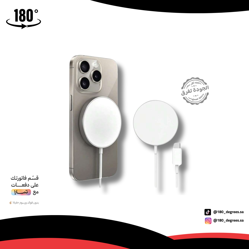 شاحن مغناطيسي سريع يثبت على جهازك بكل سلاسة، ويدعم مو بس الآيفون، حتى باقي الأجهزة اللي تشتغل على Qi مثل بعض أجهزة سامسونج وسماعات AirPods وغيرها.